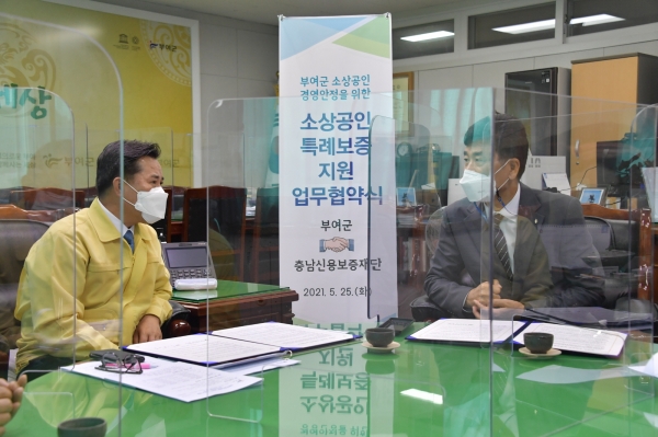 [충청뉴스큐] 부여군은 코로나19 장기화로 인해 어려움을 겪고 있는 소상공인의 경영안정을 지원하기 위해 특례보증 2억원을 추가 출연하기로 하고 충남신용보증재단과 25일 업무협약을 맺었다.