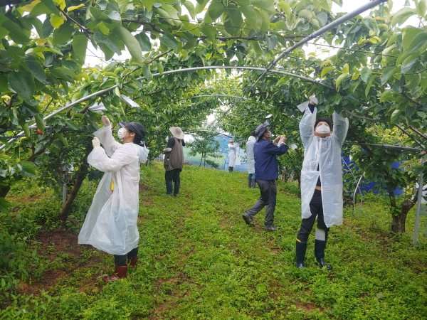 특히 배, 복숭아 등의 봉지 씌우기는 적정시기를 놓치면 품질과 수량에 많은 영향을 끼치는 것으로 알려져 있어 이번 농촌일손돕기를 통해 배 농가를 방문, 조금이나마 작업이 수월하게 진행될 수 있도록 도왔다.