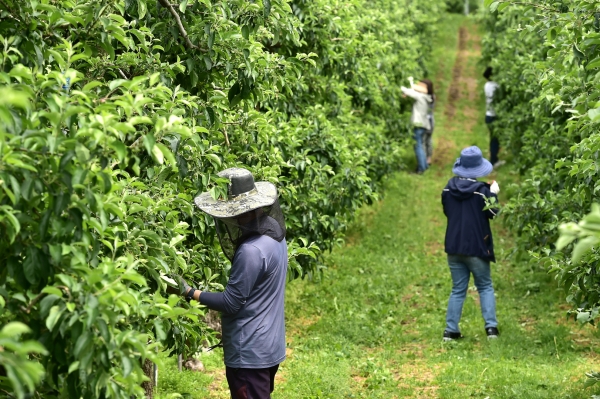 봄철 주된 작업은 농기계로 대체할 수 없고 많은 노동력을 필요로 하는 과수 적화 및 적과작업, 고추 지주대 세우기, 양채 수확작업 등 이다.