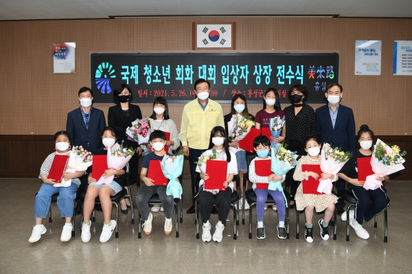 [충청뉴스큐] 홍성군은 지난 26일 군청 회의실에서 중국 장쑤성에서 개최한 제4회 우성회 국제 청소년 회화 대회에서 입상한 10명의 학생에 대해 상장 전수식을 가졌다.