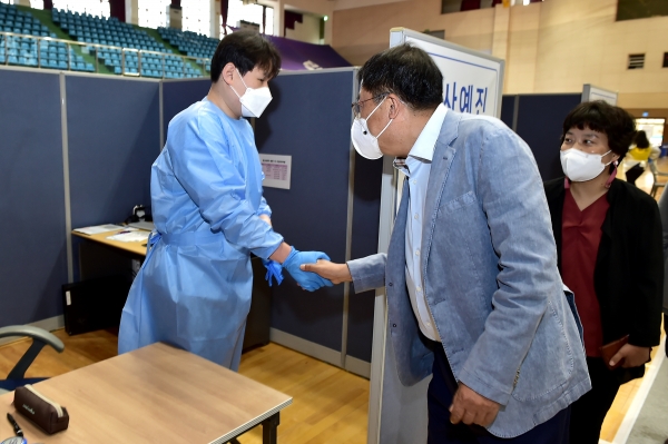 아울러 예방접종센터 진행 중 발생할 수 있는 긴급 상황에 대비해 현장 지원을 하고 있는 군, 경찰, 소방 그리고 자원봉사자 등도 응원하고 격려했다.