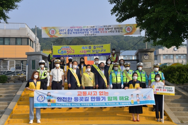[충청뉴스큐] 부여군과 부여교육지원청는 지난 9일 부여초, 규암초, 백제초 등 관내 초등학교 3개소 학교 정문 진입로 부근에서 초등학교 학생들의 교통안전 사고 예방 및 교통안전 홍보와 지역주민들의 교통안전 의식 개선 및 안전한 운전 습관 형성을 위한 캠페인을 전개했다.