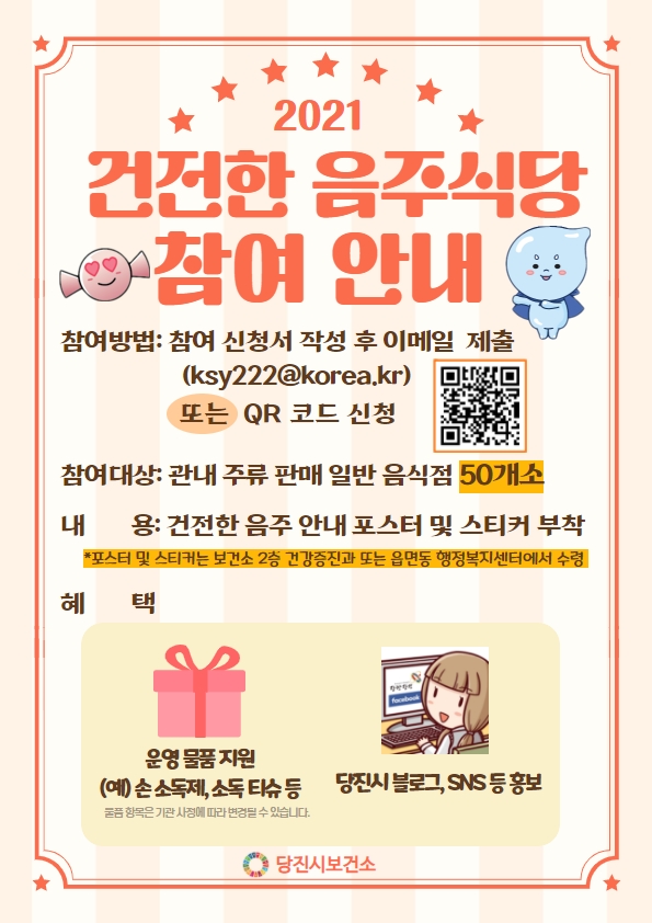 [충청뉴스큐] 당진시보건소가 고위험 음주를 예방하고 올바른 음주문화 조성을 위해 ‘건전한 음주식당’ 사업을 14일부터 본격적으로 운영한다고 밝혔다.