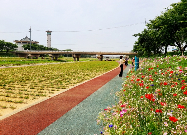 시는 6월 중순을 맞아 해미천에 코스모스, 꽃양귀비, 수레국화, 안개초, 루드베이카 등 다채로운 색상의 꽃들이 펴 아름다움을 자아내고 있다고 16일 밝혔다.