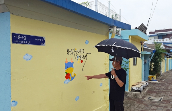 별찌 이혜정 캘리그라퍼는 “거룡4길 캘리그라피 벽화가 용산동 주민뿐 아니라 인근 학교 학생들도 많이 찾아와 지치고 힘든 일상에 숨 쉬고 힐링이 되는 골목길이 되길 바란다”며 “앞으로도 이웃들에게 힘이 되는 활동에 적극적으로 참여해 남다른 보람을 느끼고 싶다”고 말했다.