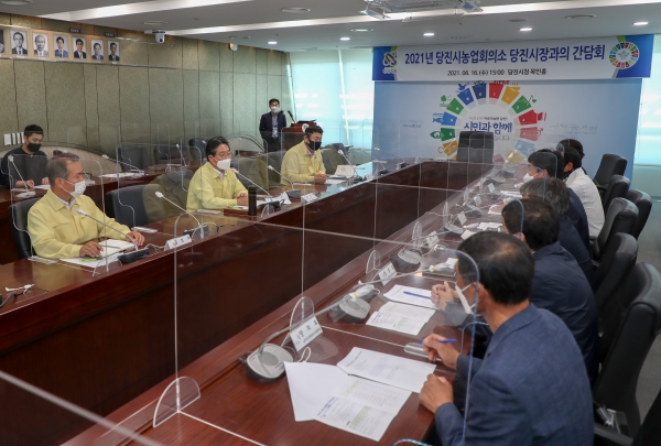 [충청뉴스큐] 김홍장 당진시장은 지난 16일 시청 목민홀에서 당진시농업회의소와 농업현안에 대한 다양한 의견을 나누고자 간담회를 가졌다.