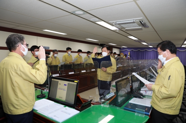 지난 24일에는 박세복 군수를 비롯해 부군수, 국장, 부서장 등이 솔선수범해 2층 상황실에서 간부공무원 자정결의대회를 열었다.
