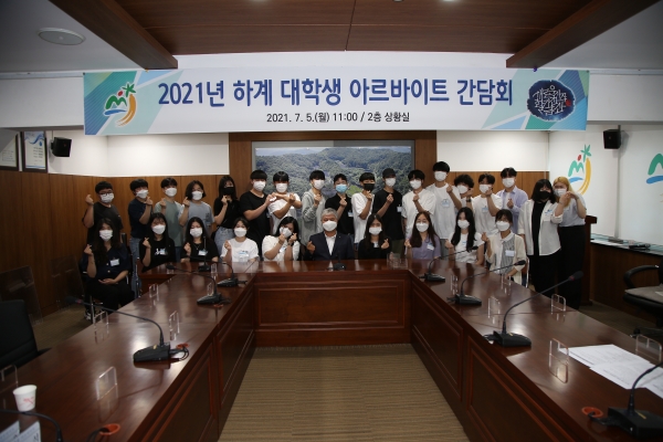 지난 7월 5일 열린 하계 대학생 아르바이트 간담회에서는 문정우 금산군수가 참석해 학생들과 인사를 나누고 실무 담당자가 실무에 필요한 근무요령, 직장 예절, 보안 교육 등이 진행했다.