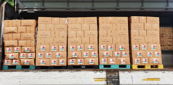 [충청뉴스큐] ㈜청정이 지난 6일 코로나19 감염 및 재확산 방지를 위해 사용해 달라며 마스크 14만 장을 기탁했다.