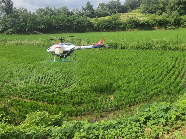 한편 무인 헬리콥터는 1일 최대 65ha, 1시간에 약 10ha까지 방제할 수 있어 방제효율성과 안정성이 높다고 알려져 있다.