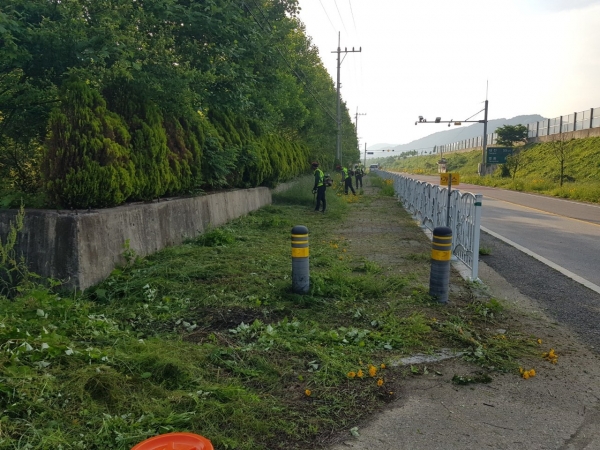 군은 원활한 차량과 보행자 통행, 안전환경 조성과 미관제고를 위해 군에서 관리중인 주요 도로변에 대해 풀깎기 작업을 진행하기로 했다.