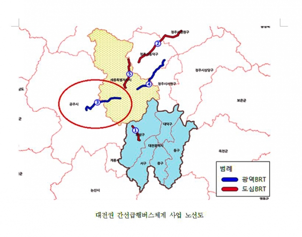 시에 따르면, 공주~세종 광역BRT 사업은 공주 산성동 시내버스터미널에서 세종시 6-2생활권인 한별리까지 구간을 잇는 간선급행버스체계로 오는 2025년 운행을 목표로 추진 중이다.