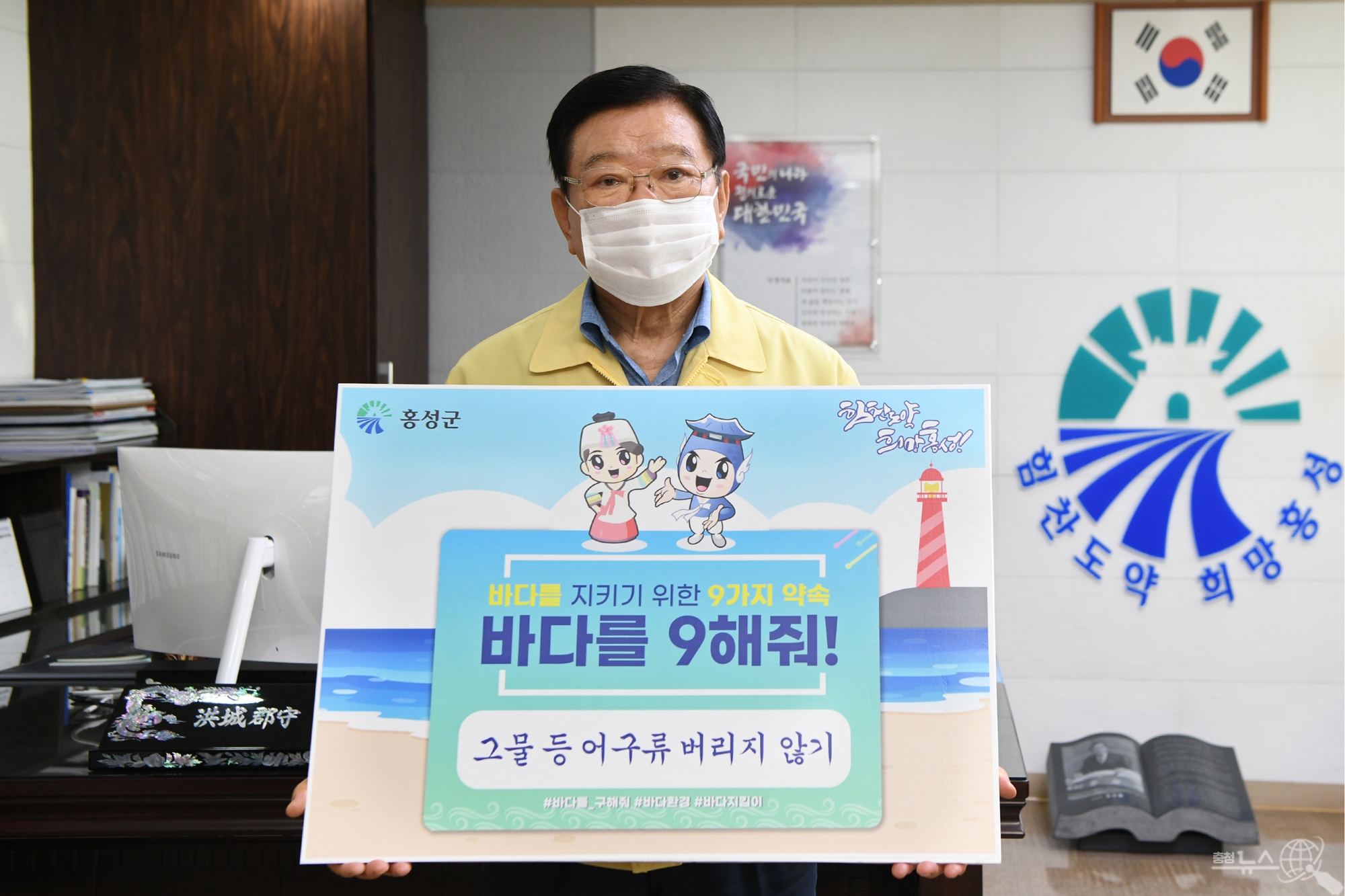 김석환 홍성군수가 지난16일 깨끗한 바다 만들기 릴레이 캠페인 ‘바다를 9(구)해줘’에 동참하며 해양환경보호에 앞장설 것을 다짐했다.