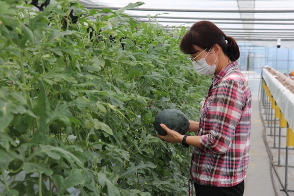 [충청뉴스큐] 옥천군농업기술센터는 하이베드 딸기 재배시설을 이용 미니수박을 식재해 첫 수확했다고 22일 밝혔다.