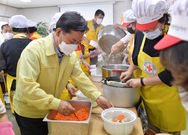 [충청뉴스큐] 대한적십자사봉사회 부여지구협의회에서는 중복을 맞아 지난 20일과 21일 이틀에 거쳐 부여군 16개 읍면의 독거노인, 저소득층 등 어려운 이웃에게 삼계탕을 만들어 전달했다.