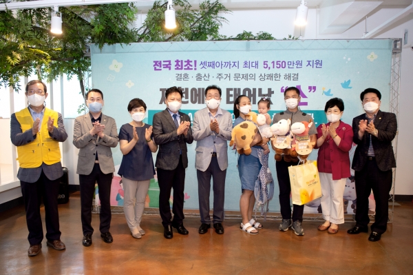 [충청뉴스큐] 제천시가 결혼, 출산, 주택 문제의 상쾌한 해결을 위해 올해부터 추진하고 있는 “3쾌한 주택자금 지원사업” 등 출산 장려 시책 홍보를 위해 주택자금지원 수혜가정에 대한 7월 두번째 축하 이벤트를 진행했다.