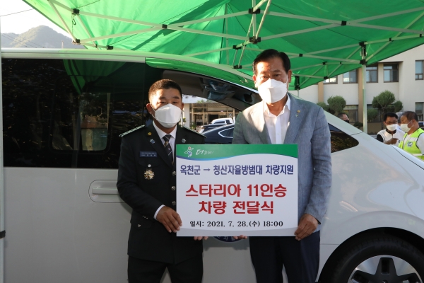 [충청뉴스큐] 옥천군은 청산면행정복지센터 앞에서 청산자율방범대 순찰차량 전달식을 열고 면 자율방범대에 순찰차량 1대를 전달했다고 30일 밝혔다.