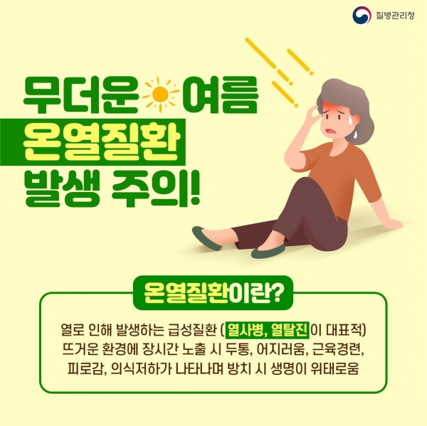 온열질환은 열로 인해 발생하는 급성질환으로 뜨거운 환경에 장시간 노출 시 두통, 어지러움, 근육경련, 피로감, 의식저하 등의 증상을 보이고 방치 시에는 생명이 위태로울 수 있는 질병으로 대표적으로 열사병과 열탈진 등이 있다.