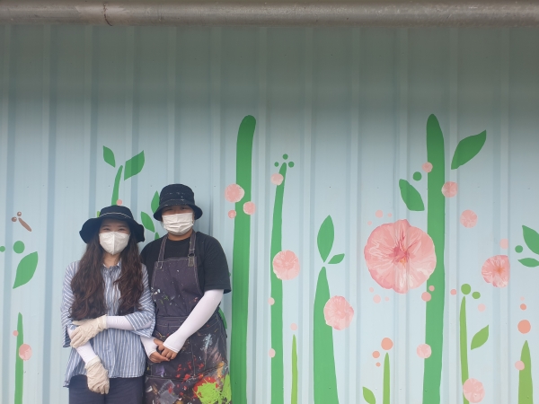 두 학생의 소중한 재능기부로 양강면 재활용선별장의 벽면에는 양강면을 상징하는 복숭아나무와 앞으로 면내에 조성될 접시꽃 길, 영동군을 상징하는 형형색색 무지개가 그려졌다.