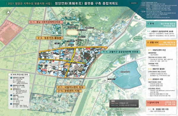 군은 청양읍 교월리에 조성 중인 공공임대주택 300호를 거점으로 인근 사회적경제 혁신타운 일자리와 연계, 청년층 자립과 네트워크 핵심 거점으로 활용할 ‘내일이U센터’를 청춘거리에 건립할 계획이라고 전했다.