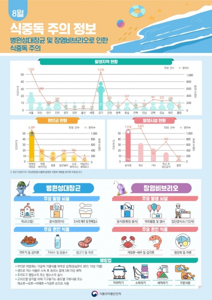 식중독은 세균이나 기생충, 독소, 화학물질 등의 유해물질에 오염된 음식을 섭취한 경우 발생하는 질환으로 장염비브리오균, 살모넬라균, 황색포도상구균 등 식중독의 원인균이 높은 기온에 번식할 가능성이 높아지면서 음식물 관리에 각별한 주의가 요구된다.