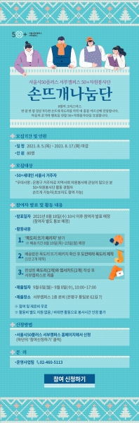 손뜨개 나눔 활동에 참여를 원하는 50+세대는 5일부터 50+포털에서 자세한 모집 정보를 확인할 수 있다.