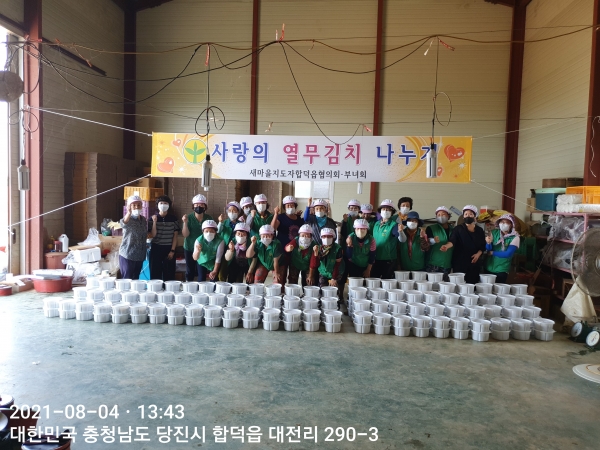 주옥순 새마을부녀회장은 “어려운 이웃들을 위해 무더운 날씨에도 새마을합덕읍협의회·부녀회 회원들이 마음과 정성을 다해 김치를 담가주셔서 감사하다”며 “앞으로도 마을 공동체 만들기 운동으로 다양한 활동을 지속적으로 추진하겠다”고 말했다.
