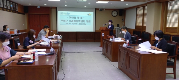 [충청뉴스큐] 부여군은 지난 5일 오후 2시 군청 서동브리핑실에서 5명의 위원이 모여 제1회 사례결정위원회를 개최했다고 밝혔다.
