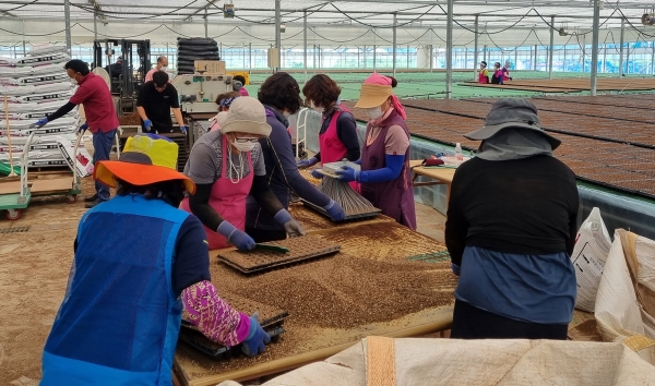 농업기술센터는 자체 첨단공정 육묘장에서 안전하고 우량한 모종을 생산해 오는 24일부터 각 마을에 배송할 예정이며 공급가격은 1상자에 3,000원이다.