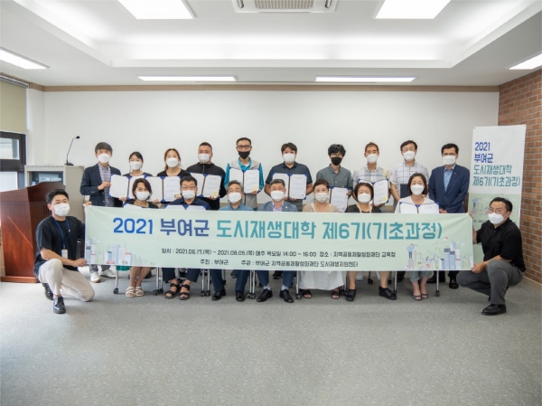 [충청뉴스큐] 부여군은 지난 5일 부여시장 상인회교육장에서 16명의 수강생이 참석한 가운데 ‘2021 부여군 도시재생대학 기초과정 수료식’을 진행했다고 밝혔다.