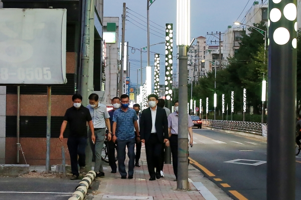 맹정호 서산시장은 지난 9일 먹거리골 경관조명 거리를 걸으며 설치현장을 점검했다.