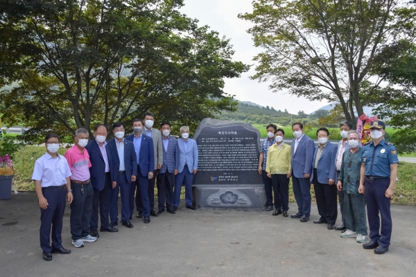 [충청뉴스큐] 부여군은 지난 11일 외산면 문신1리 애국지사 마을에서 애국지사 마을 표지석 제막식을 진행했다고 밝혔다.