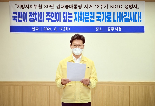 [충청뉴스큐] 김정섭 공주시장이 지방자치 부활 30주년을 맞아 명실상부한 자치분권국가 실현을 촉구하는 성명서를 지난 17일 발표했다.