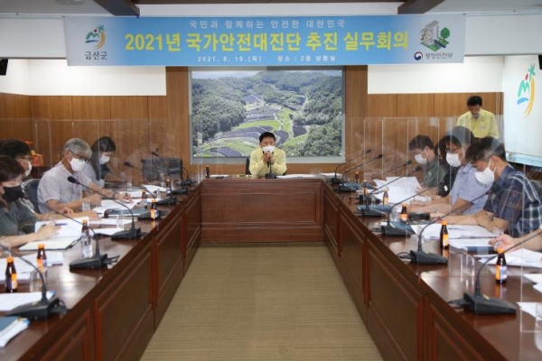 [충청뉴스큐] 금산군은 지난 19일 군청 상황실에서 국가안전대진단 사전홍보 및 사업 추진을 위한 2021년 국가안전대진단 추진 실무회의를 개최했다고 밝혔다.