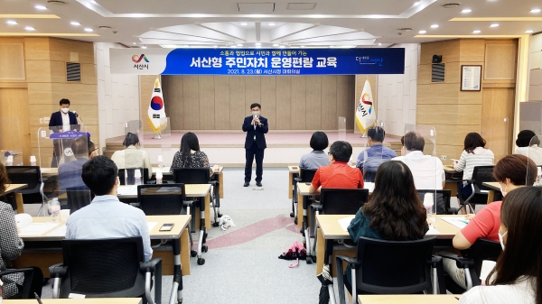시는 지난 23일 시청 대회의실에서 ‘서산형 주민자치 운영편람 교육’을 열고 각 읍면동 주민자치 팀장 및 담당자 교육 후 책자 배부를 마쳤다.