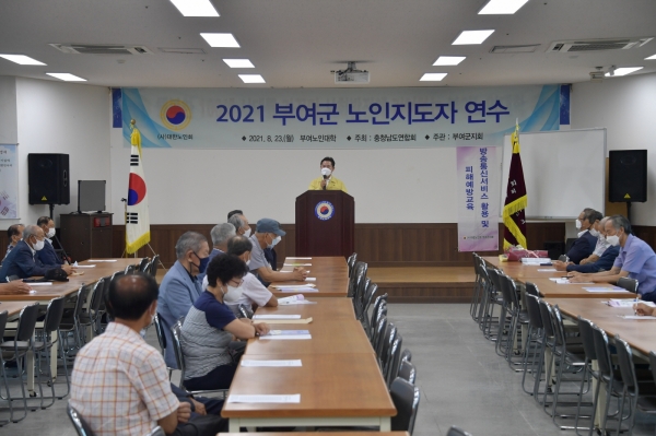 [충청뉴스큐] 대한노인회 부여군지회가 지난 23일 부여노인대학에서 2021년 노인지도자 연수를 개최했다.