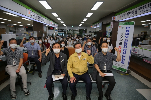 [충청뉴스큐] 서천군은 이달 24일 민원실 민원업무 담당자들과 형식에 구애받지 않는 자유로운 분위기 속에서 민원서비스 만족도 증대를 위한 현장 간담회를 가졌다.