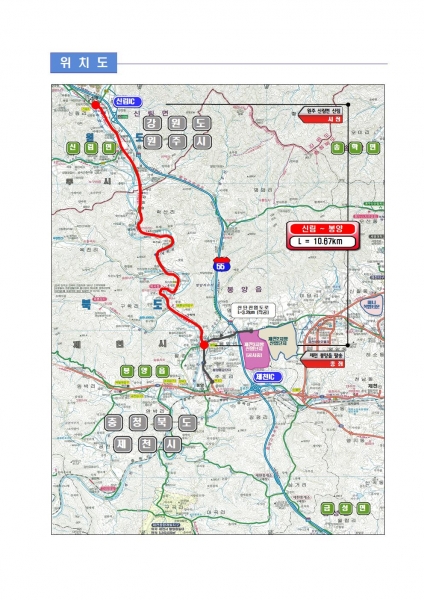 봉양-신림 구간은 원주에서 단양구간의 국도5호선 중 유일하게 미착수된 구간으로 집중호우시 상습 침수가 발생되어 차량이 통제되는 등 2015년부터 5년간 97건의 사고가 발생됐으며 최근에는 배론성지에 성지순례 등 방문객이 크게 증가하고 있어 4차로 확장의 필요성이 크게 대두된 지역이다.