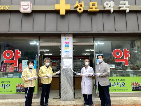 ‘생명존중약국’은 생명존중거점약국을 지정, 약국이 지닌 전문성을 활용해 자살예방 역할을 수행하는 생명사랑지킴이 약국이다 .현재 관내에는 성모약국을 비롯해 총 16개소가 운영 중이며 점차 확대될 예정이다.