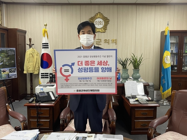 [충청뉴스큐] 증평군의회 연풍희 의장은 양성평등주간과 제2회 여권통문의 날을 맞아 증평군여성단체협의회에서 추진하는 여권통문의 날 챌린지를 진행했다.