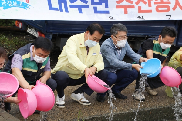[충청뉴스큐] 옥천군이 내수면의 풍부한 어족자원 증식을 위해 매년 수산종자 매입방류사업을 추진해 어민소득 증대에 큰 힘이 되고 있다.