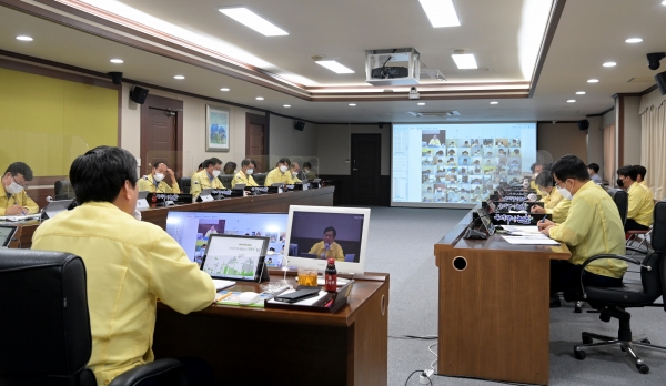 13일 시청 상황실에서 개최된 9월 확대간부회의는 코로나19 확산 방지를 위해 나라이음을 통한 비대면 화상회의 방식으로 진행됐으며 국·소장을 비롯해 읍·면·동장이 참석해 부서별 현안사항을 공유·논의하는 시간을 가졌다.