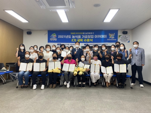 김윤호 이사장은 “코로나19로 어려운 상황 속에서도 농식품 가공과 창업에 대한 열정으로 모든 교육과정을 마친 여러분에게 크게 감동했다”며 “가공·창업 과정에 군이 운영하는 농산물 가공센터와 잔류농약 320종을 분석하는 안전성 분석센터를 활용하시기 바란다”고 말했다.