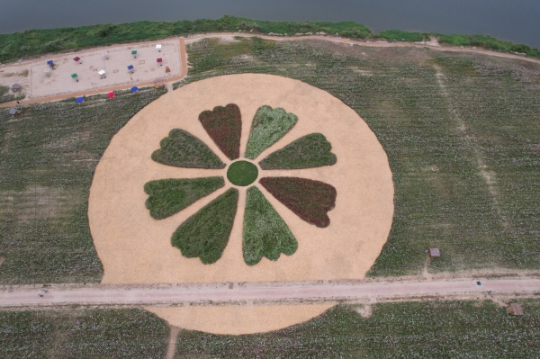 [충청뉴스큐] 부여군 백마강변에 초대형 코스모스 단지가 장관을 이루고 있다.