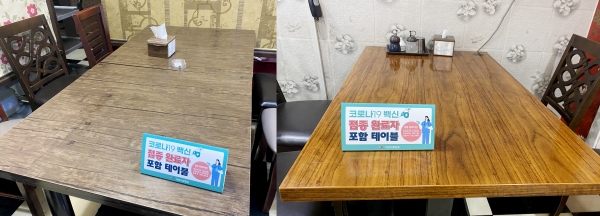 각 업소는 이용객의 예방접종 완료 여부 확인 후 일행이 이용 중인 좌석에 세워두면 된다.