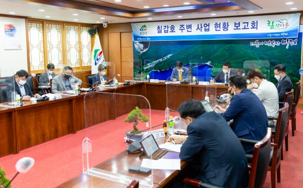 진행 중인 사업은 칠갑타워 조성사업, 칠갑호 관광자원 조성사업, 칠갑호 관광거점 조성사업, 칠갑호 수상관광 조성사업, 구기자 산채 체험관 조성, 칠갑호 산림녹지공원 조성사업이다김돈곤 군수는 “부서별 추진 업무를 공유하면서 사업 효율을 높여야 관광객 유인 요소를 갖출 수 있다”며 “천혜의 자연조건을 최대한 살려가며 새로운 관광 명소를 만들자”고 말했다.