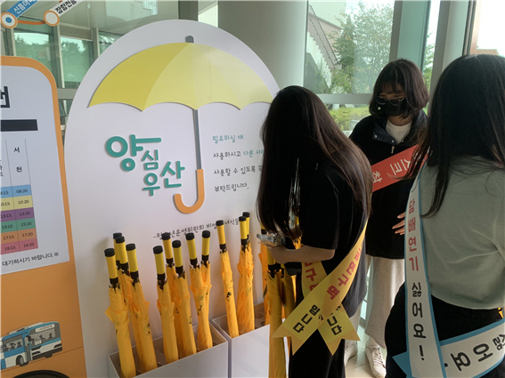 양심우산의 색상은 안전을 상징하는 노란색으로 통일하고 청소년위원회 로고와 양심우산 글귀를 삽입해 제작했다.