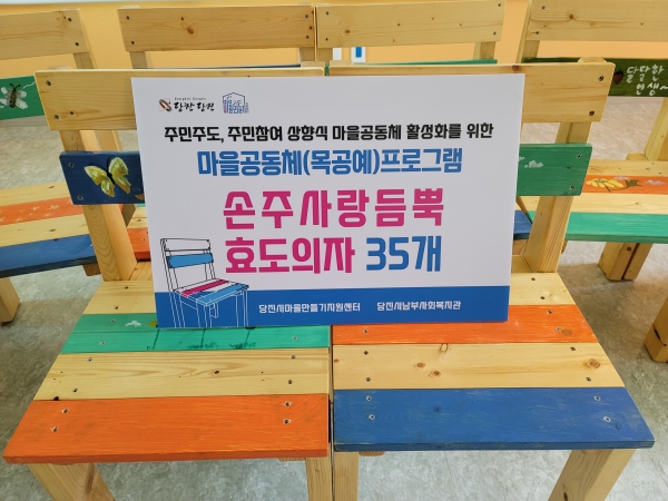 당진시마을만들기지원센터 주관으로 추진된 주민주도의 주민참여 상향식 마을공동체 활성화사업 일환인 ‘손주사랑 듬뿍, 효도의자 만들기’ 프로그램은 중·고등학생들에게 목공예 창작활동 기회를 제공함과 동시에 완성된 작품을 지역 어르신들께 기증함으로써 공동체 구성원 역할과 함께 사회봉사에 참여할 수 있는 기회를 부여했다.