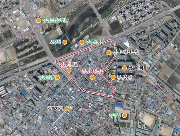5일 군에 따르면 국토교통부 도시재생 뉴딜 신규 사업지로 증평읍 윗장뜰 지역이 선정돼 국·도비 93억원을 확보했다.