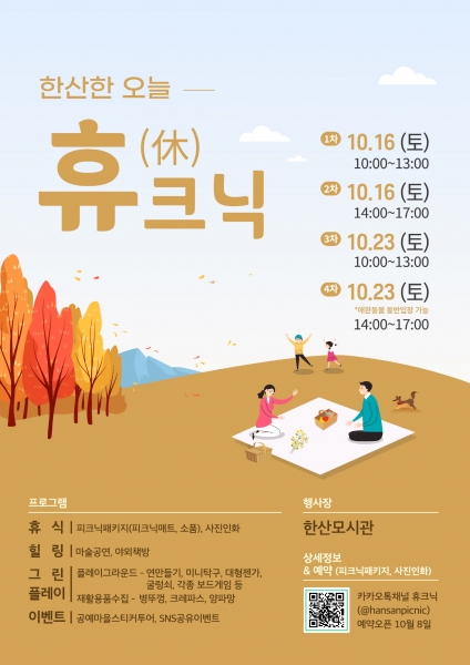 [충청뉴스큐] 서천군은 가을 피크닉의 계절을 맞아 한산모시관 자연 속 피크닉을 개최해 코로나19로 지친 국민들을 위로하고 힐링의 경험을 제공하고자 이번 달 16일 23일 모시관 휴크닉을 운영한다.